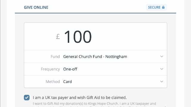 The easier it is to give and to make changes to your giving, the better. ChurchSuite Donate - the online giving system that comes as part of the Giving module removes the hurdles!